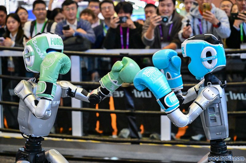 东谈主形机器东谈主进行格斗扮演。 新华社像片